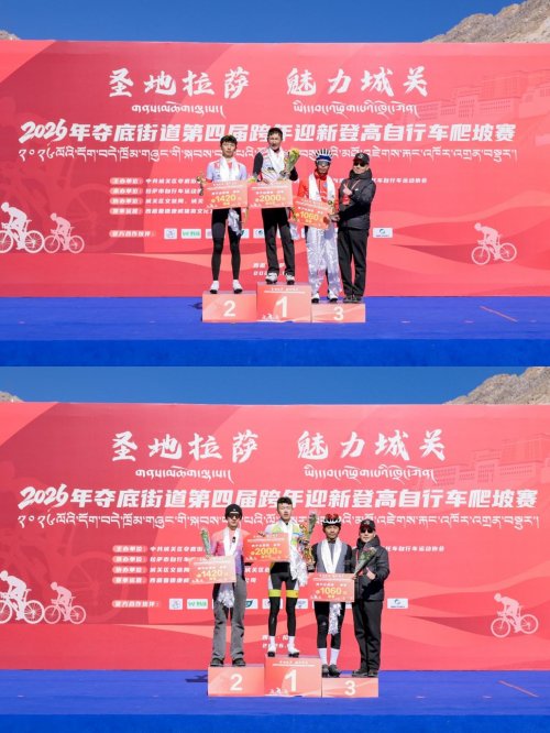 1月1日,“圣地拉萨 魅力城关”2026拉萨市城关区夺底街道第四届跨年迎新登高自行车爬坡赛在夺底沟维巴村好客藏家生态旅游景区顺利举办。